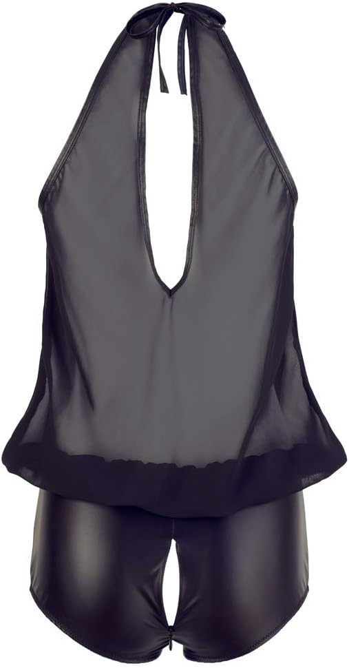 Stupendo body nero con corpo centrale a rombo con stringhe. Tutto unito da geometrie semplici e sensuali.