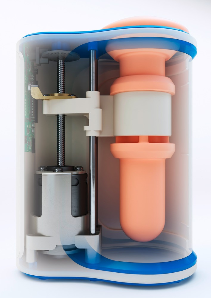 Il masturbatore ha vibrazioni, una funzione di riscaldamento e un movimento su e giù.