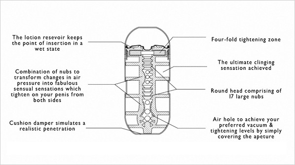 Un affare da non perdere!.. Questo prodotto realizzato con le più avanzate tecnologie da Tenga possiede al suo interno una combinazione di 24 cuscinetti ad aria e di rilievi stimolanti in grado di adattarsi ai vostri movimenti per fornirvi sensazioni mai provate fino ad ora… Se a questo aggiungete la possibilità di regolare la pressione sul vostro pene mediante la valvola posta nella parte superiore, l’orifizio da penetrare molto stretto e costantemente lubrificato… che dire… il migliore orgasmo della vostra vita!