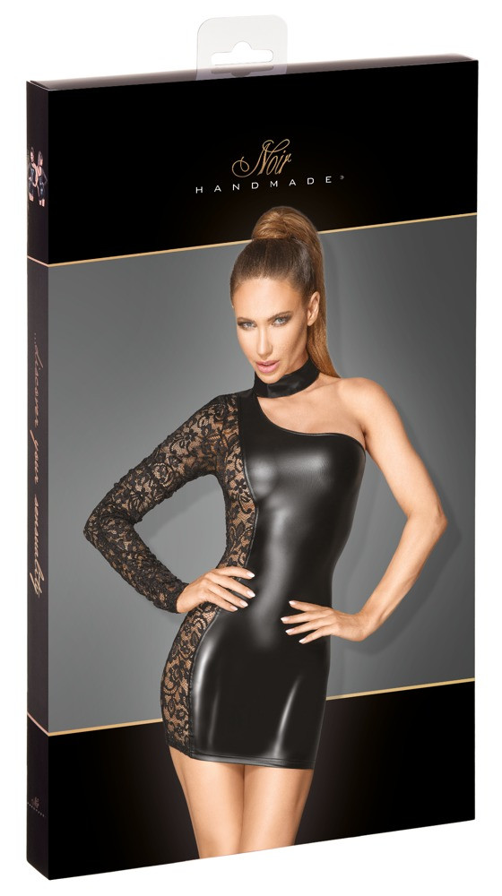 MINI ABITO SEXY MANICA LUNGA PIZZO ASIMMETRICO – NOIR HANDMADE