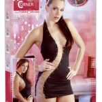 Mini abito trasparente con frange ai bordi. Con un anello decorativo sulla scollatura e allacciatura posteriore. Nero. 90% poliammide, 10% spandex.