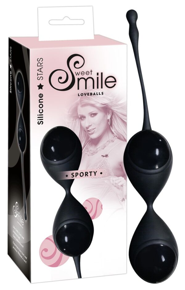 Palline delle geishe Smile nere con sistema silent, pallina vibrante all’interno che stimola, massaggia e tonifica i muscoli del pavimento pelvico e vaginale – per aumentare il piacere durante tutto il rapporto sessuale.