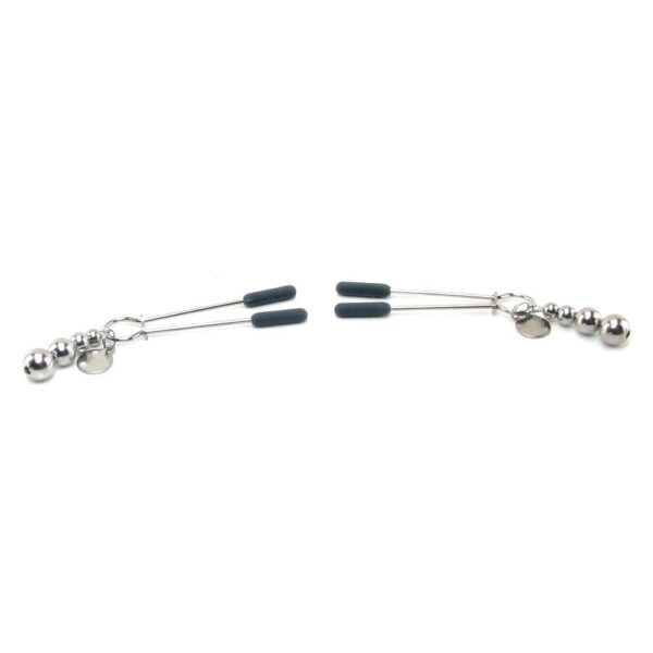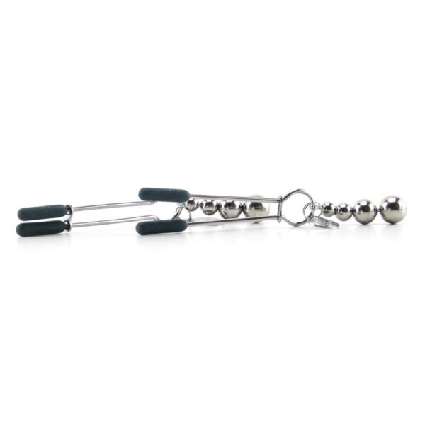 Set professionale di pinze per capezzoli con regolazioni ed estremità ricoperte in morbido silicone. Dalla serie ufficiale di 50 sfumature di grigio, un gioco di dolore misto a piacere, intenso piacere. Due pesetti posti alle estremità della catena garantiscono vibrazioni più intense dovute al momento per un’impennata della sensibilità del capezzolo e del piacere.