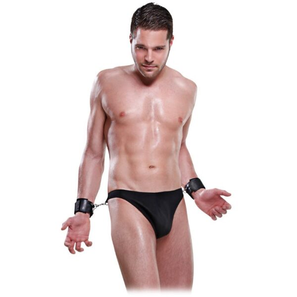 Fetish Fantasy Bondage Thong per gli uomini. Questo set prodotto dalla pipedream, comprende cinghia da polso e polsini unite ad un slip attraverso apposite catene poste sui fianchi.