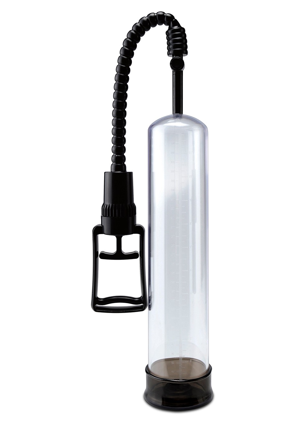 Basta far scorrere il pene attraverso il polsino stretto e morbido nel cilindro trasparente marrone e creare comodamente il potente vuoto di virilità con la speciale pompa di trazione con una sola mano.