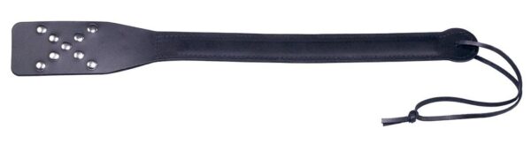 Sculacciatore in pelle con manico lungo rinforzato e borchie sulla punta. Un comodo laccio in pelle permette di avvolgerlo sul polso per una impugnatura salda.