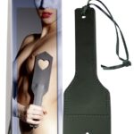 Sculacciatore realizzato in genuino cuoio nero, possiede un ritaglio a forma di cuore nella parte superiore. Impugnatura rinforzata e dotata di laccetto per un migliore presa.