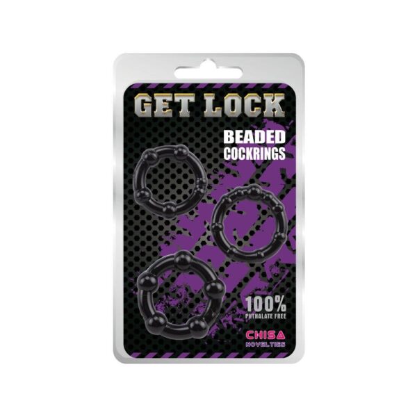 SET 3 ANELLI FALLICI CON RILIEVI STIMOLANTI “BEADED COCKRINGS” NERI