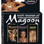 Confezione contenente 3 differenti oli per massaggi Magoon, dalle variegate fragranze, in modo da accoppiare ad ogni tuo momento d’amore quella giusta.