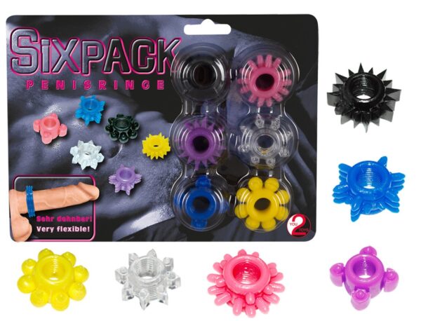 SET 6 ANELLI FALLICI CON DIFFERENTI RILIEVI STIMOLANTI “SIXPACK”
