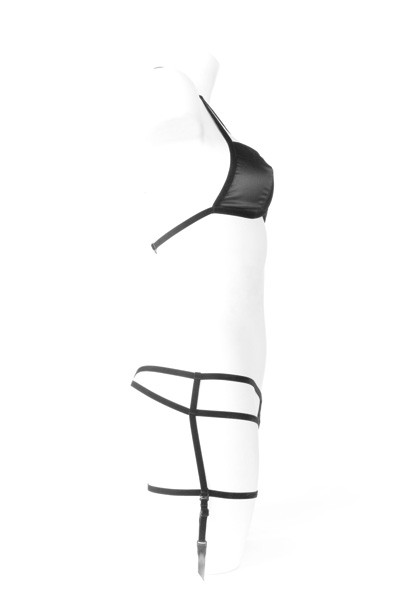 Perizoma a forma romboidale collegato a delle sensualisse stringhe reggicalze che faranno impazzire il vostro partner….