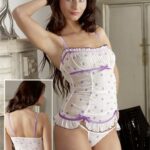 Coordinato composto da reggiseno con aperture stringate, preziosa orlatura in pizzo e dettagli in colorazione rosa….