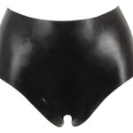 Slip neri in lattice a vita alta. Il cavallo aperto รจ ideale per giochi erotici. Articolo BDSM di sicuro interesse. Colore: Nero. 100% lattice.