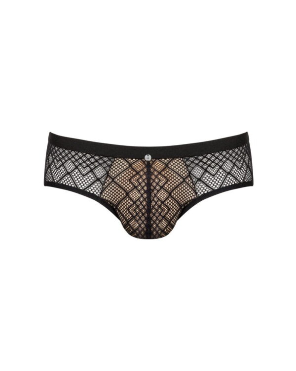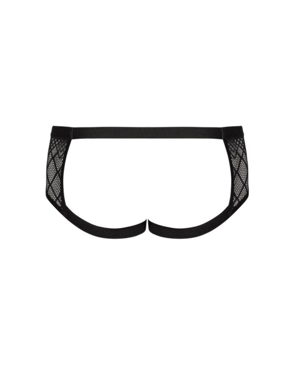 Atleta nero Severio di Obsessive in tessuto trasparente dalla fantasia stravagante con pochette opaca sottocoperta. Morbido ed elasticizzato per un comfort completo. Comoda cintura elasticizzata con un piccolo elemento metallico sul davanti. I comodi sospensori lasciano il sedere piacevolmente libero, spingono ed enfatizzano.