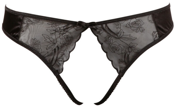 TANGA NERO IN RASO E TULLE CON APERTURA