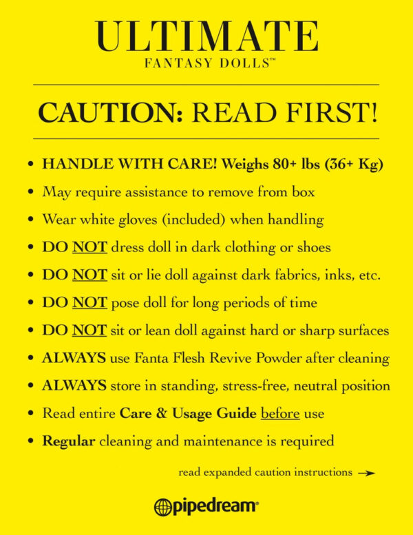 La bellezza rosso-bionda ha una silhouette sottile. I seni extra large sono completati da capezzoli di forma perfetta. Le sue mani e i suoi piedi dettagliati sono convincenti fino alle unghie curate. Uno scheletro di alluminio all’interno rende Bianca mobile dalla testa ai piedi. I perni sulle piante dei piedi permettono alla bambola di stare in piedi da sola.