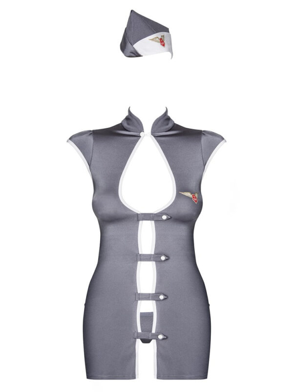 Che si tratti di prendersi cura dei passeggeri o di dare una mano al pilota, questo vestito sexy da hostess è perfetto per giochi di ruolo erotici! Include un mini abito, una stringa e un berretto. Grigio / bianco.