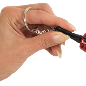 Il divertente portachiavi da regalare agli amici, come piccolo regalo al tuo partner o semplicemente per attaccarci le tue chiavi. E poi: suona il campanello quando ne hai voglia... Campana di metallo rosso con manico nero e stampa nera: "Ring for Sex". Lunghezza 6,5 cm, Ø 3,7 cm.